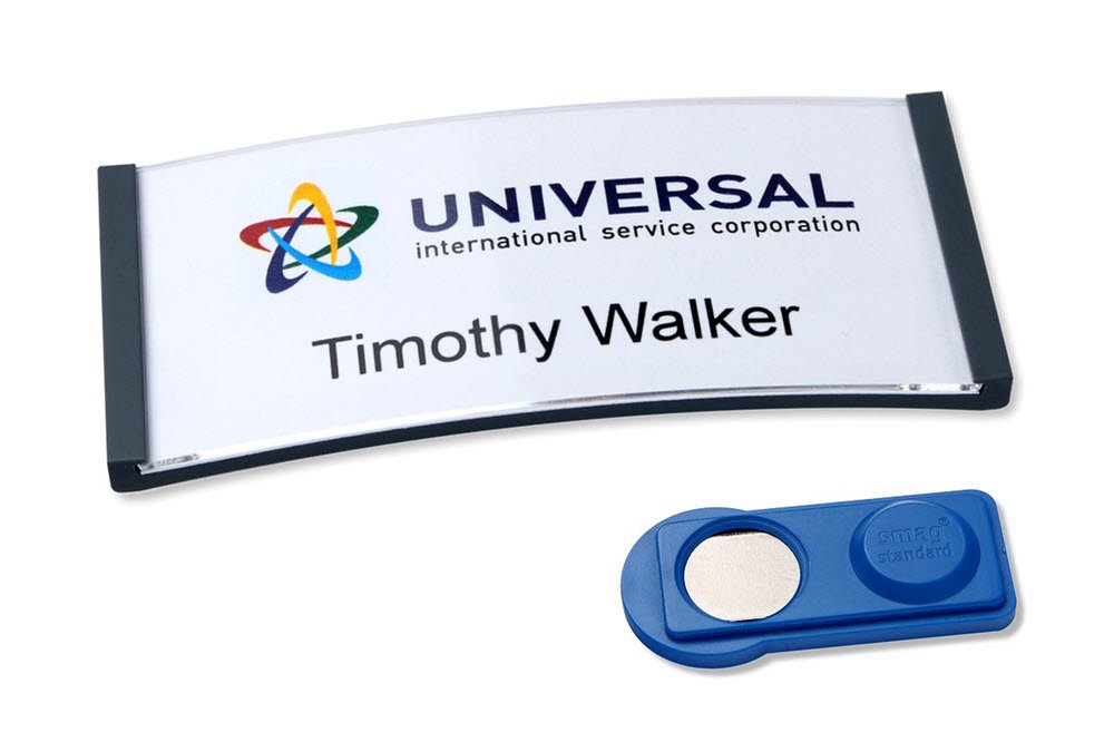 Navneskilt m/magnet Badgepoint 70x30mm grå ramme (10)